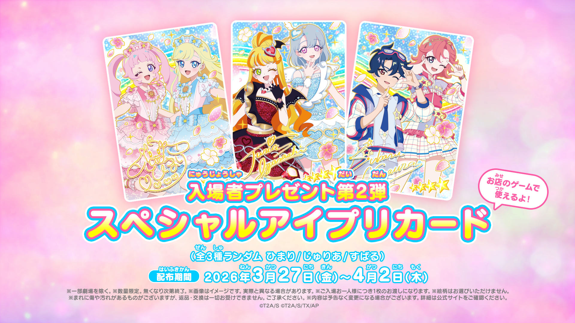 - スペシャルアイプリカード(全3種ランダム ひまり/じゅりあ/すばる)