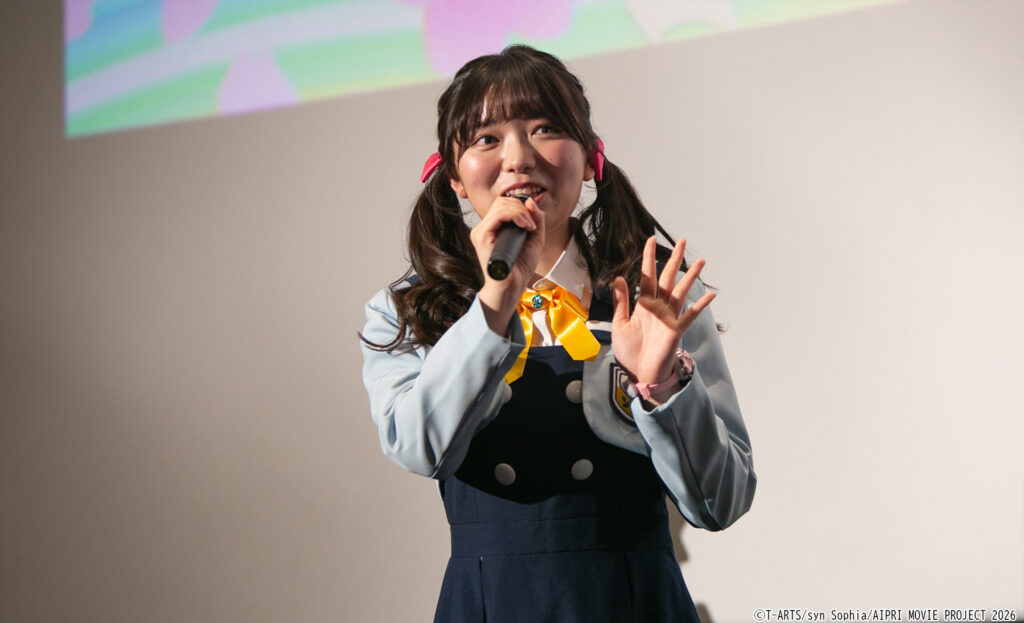 最後は登壇者それぞれから観客へのメッセージが贈られ、超ときめき♡宣伝部の辻野かなみより「映画のテーマソングが私たちの楽曲「開花宣言!」になって嬉しい気持ちでいっぱいです。“夢に向かって自分らしく輝こう”というメッセージがこもった楽曲になっていますので、映画と合わせて楽曲も愛していただいけたら嬉しいです」。平塚紗依より「テレビアニメで約2年間、一緒に歩ませていただいて、思い出や気持ちがこもったアイプリの映画が本日、公開されて皆さんに届いたことが本当に嬉しいです」。藤寺美徳より「この作品は自分もアイプリの世界に入れるような、素敵な魅力が詰まった作品になっていると思います。映画が上映されたのは、応援してくださる皆さんのおかげですし、アイプリを好きな方はもちろん、まだ見たことがない方もご家族や友人と何度でも楽しんでいただけると嬉しいと思います」と、会場全体が温かい空気に包まれながら、午前の部の舞台挨拶は幕を閉じました。