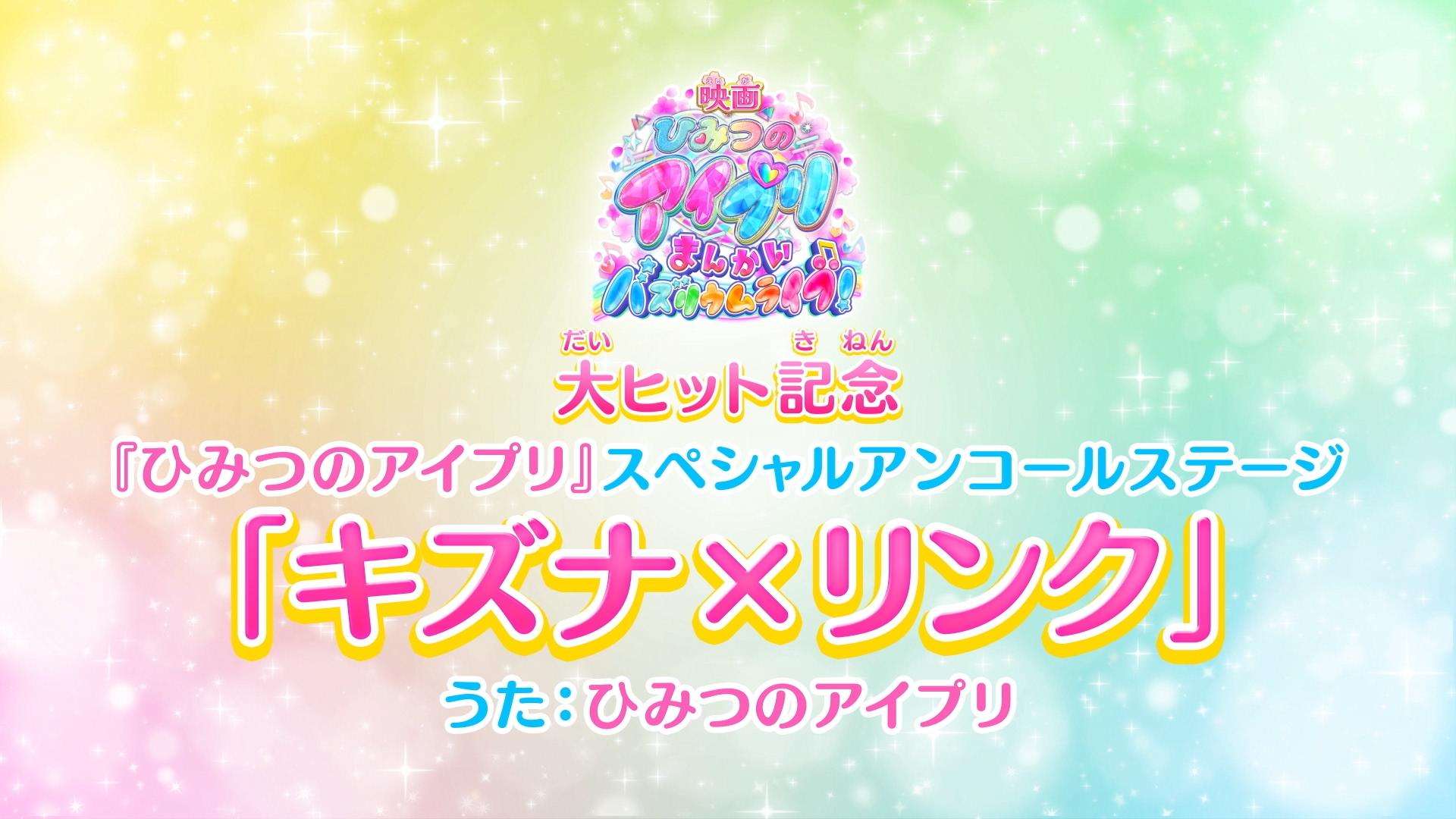 現在大ヒット上映中の『映画ひみつのアイプリ まんかいバズリウムライブ!』の本編終了後に、TVアニメ第100話「We're アイプリ」より『キズナ×リンク』のCGライブ映像の上映が決定🌈