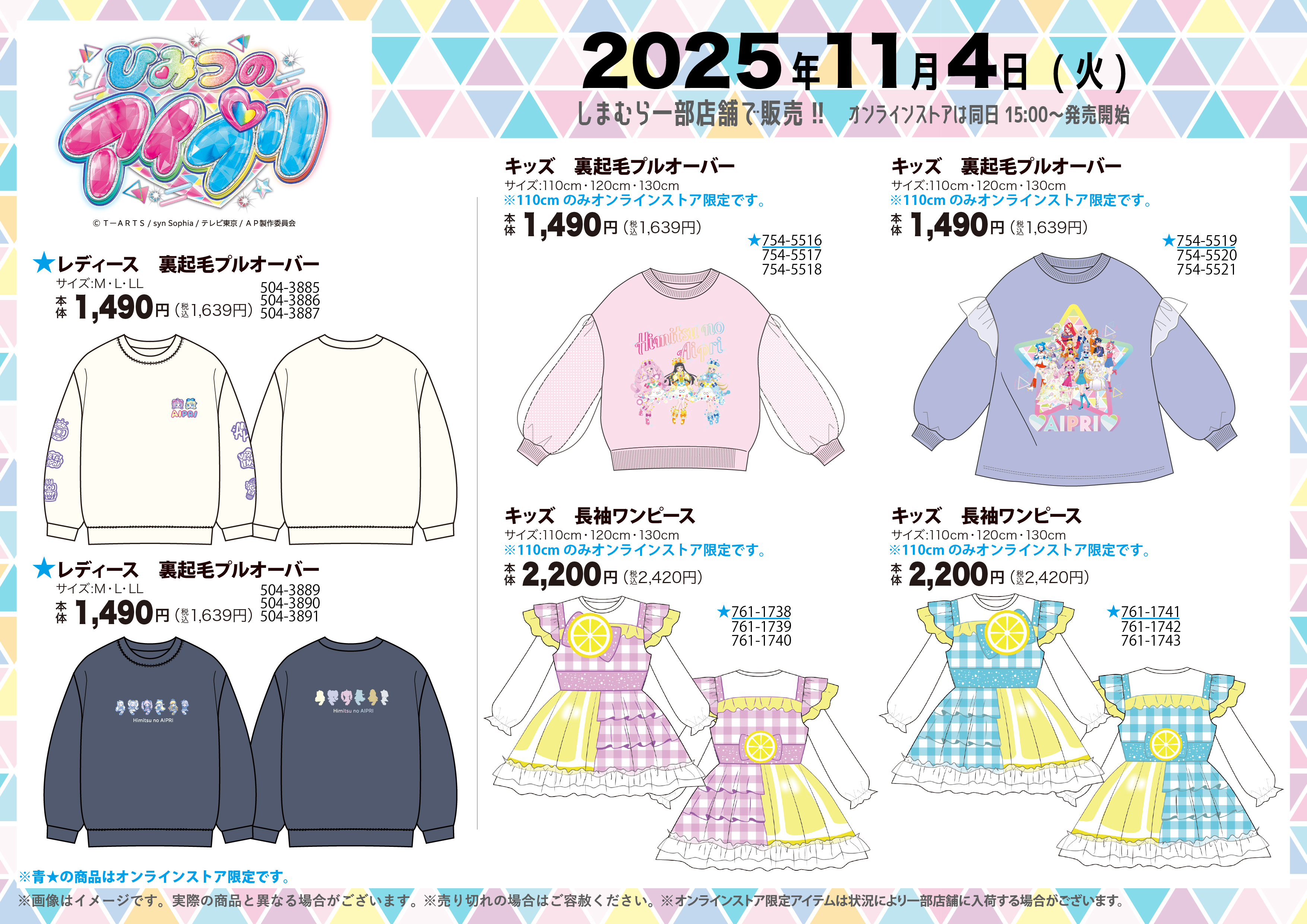 11/4(火)~しまむら一部店舗&オンラインストアにて、「ひみつのアイプリ」のアイテムが発売!💖