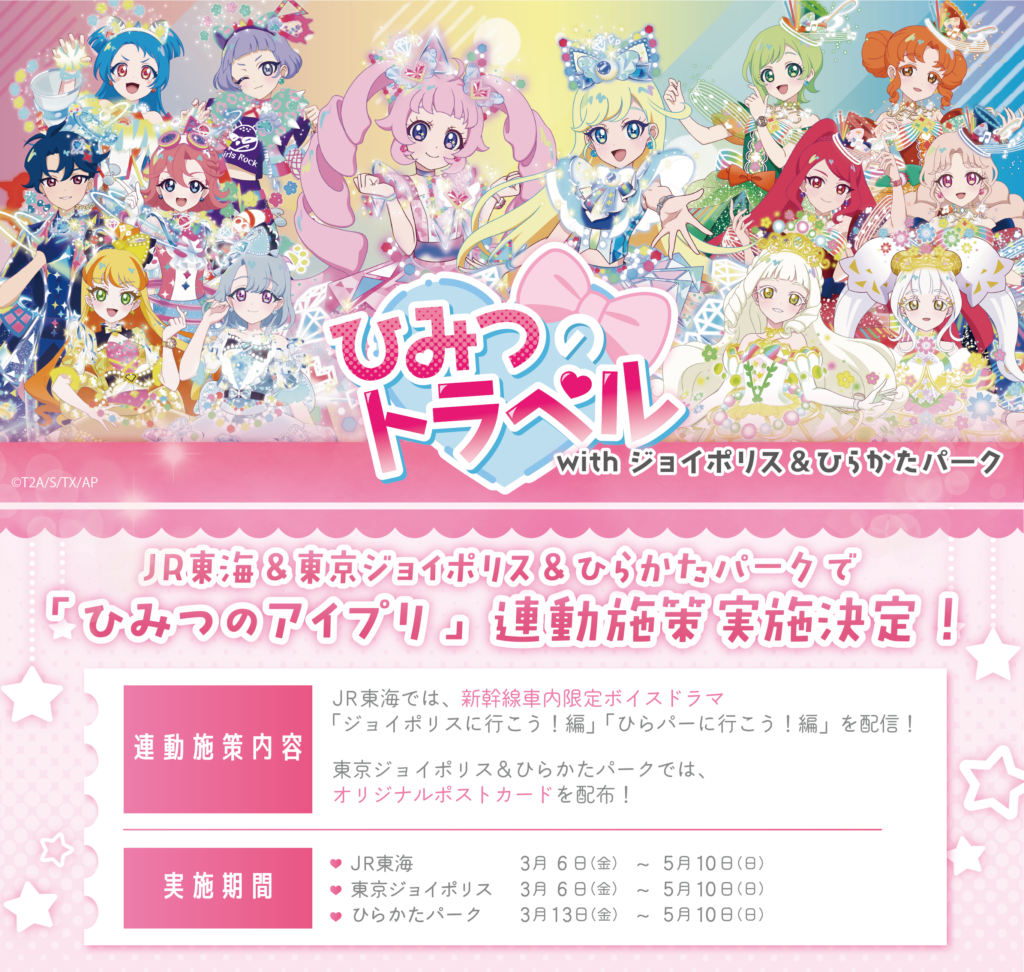 JR東海&東京ジョイポリス&ひらかたパークにて『ひみつのアイプリ』コラボ開催!さらに3社連動施策の実施も!