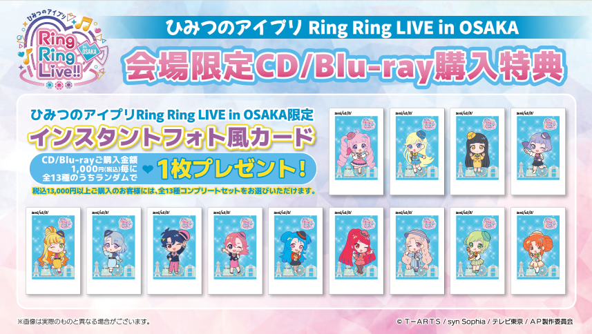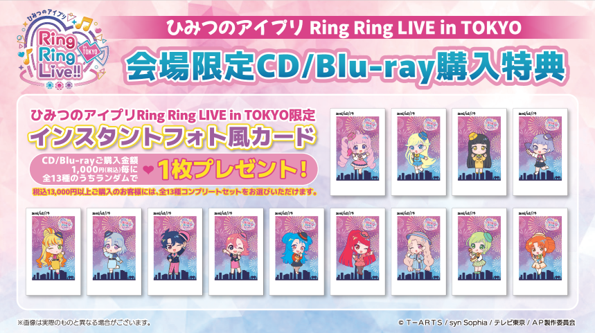 「ひみつのアイプリ Ring Ring LIVE 」限定インスタントフォト風カードをランダムでプレゼントいたします。(全13種)