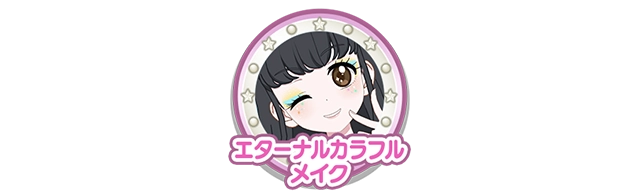 - マイキャラパーツ「エターナルカラフルメイク」をゲットした後、追加でシールを集めるといずれか一つゲットできるようになります。