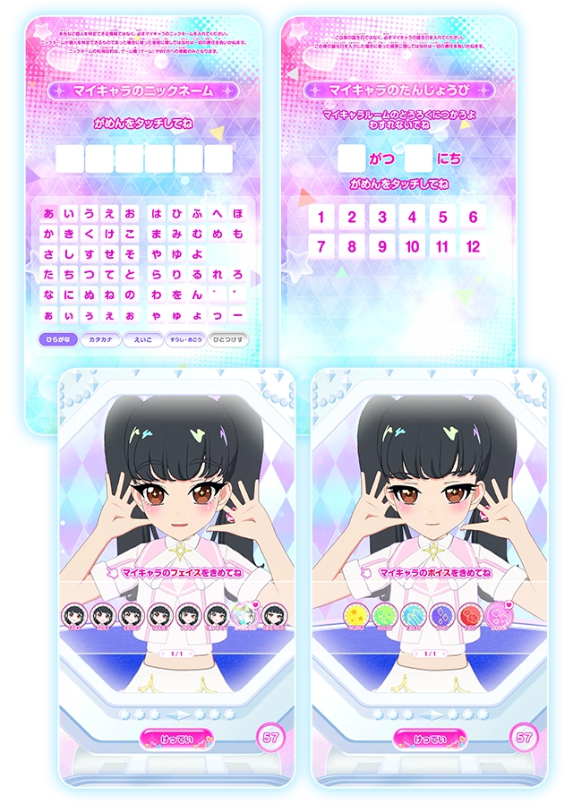 まずは、マイキャラのニックネームを入力してフェイスとボイスを選ぼう!